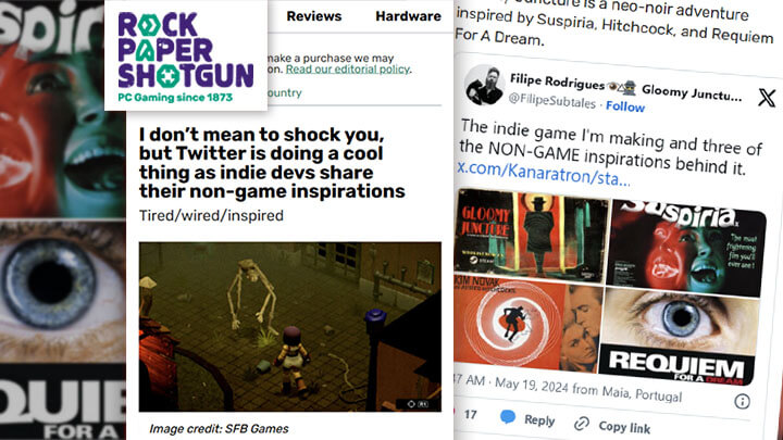 The art style of Gloomy Juncture is breathtaking! The fact that all the assets are hand-drawn and created by a single guy is a miracle in itself. It's truly astonishing that the entire development team consists of a guy with his cat, yet they created such an innovative game blending first-person perspective with classic point & click gameplay. This game immerses players in a mysterious noir world, and through its unique art style, makes you feel like you're inside the protagonist's complex mental state.
